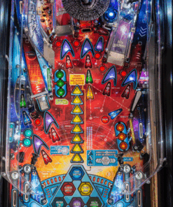 Sterns Star Trek pinball machine features all the bells and whistles a Star Trek fan would desire. With adrenalin-filled battles, high-definition artwork, cosmic LED lighting and classic musical scores, the Star Trek game will evoke the sensation of flying through space at Warp Speed to rescue Spock and defeat the U.S.S. Vengeance. The newest game from Stern includes an animated battleship, three lightning fast ramps, three flippers, resettable memory drop targets and much more.