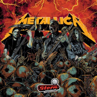 Metallica is a Stern pinball machine first released in 2013 based on the music of Metallica. The machine includes 12 songs including “Master of Puppets,” “One,” and “Fade To Black.” The game also features an electric chair, snake, grave